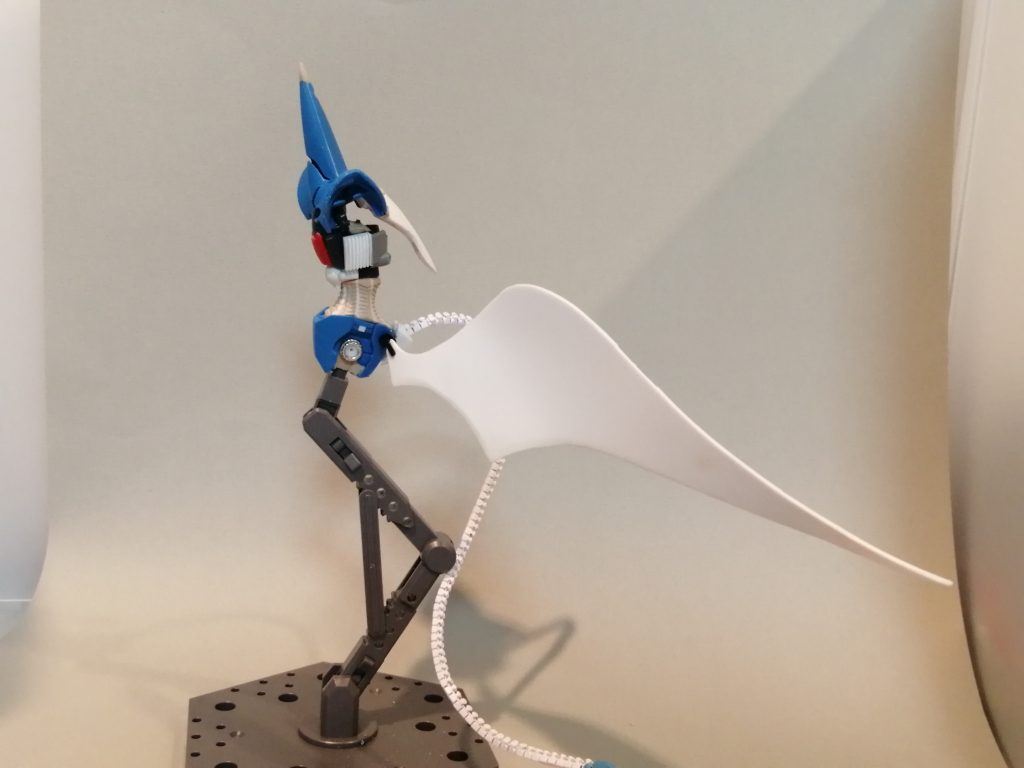 羽根はプラ板を切り出したものに手で曲げ癖をつけています。接続はホビーベースのボールジョイントを使用。