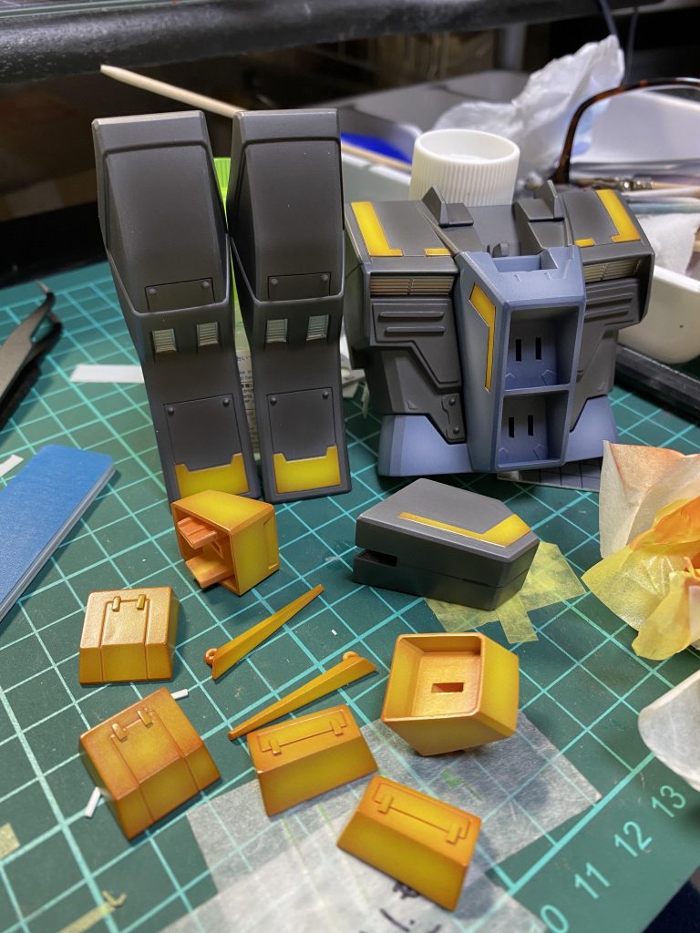 シゲぴょん 2021.11/08更新 23 952 9 いいねしたモデラー(9) 0 作品を共有 サイコG塗装の途中経過 イエローのグラデーション塗装終了しました。サイコガンダムのマスキングは比較的に直線が多いので楽な作業です。黄色のグラデをハッキリ付けたい時に最近私が多様する塗装法ですが、ブラウンの下地から→ホワイトでグラデ→クリアイエローの順番で塗装しました。この立ち上げ方だと難しいとされてるイエローの発色を良くする目的と印影も綺麗に表現出来るので一石二鳥ですね♪😉 制作中 コメント コメントをして応援しよう コメントにはログインが必要です シゲぴょん 初めまして!ガンプラ製作は基本的に全塗装します。製作工程としてはスジ彫りやプラ板を使ったディテールを簡単ではありますが手を加えて楽しんでるモデラーです。 特に好きな作業はグラデーション塗装です。 製作期間はスローなタイプですが宜しくお願いします。 9 リバイブ版をRG化! 皆さんこんにちは!製作期間は、合間を縫って、約1年掛かって仕… 6 改めてRGジオング完成です! 運良く新発売の時に購入出来たRGジオングですが、つい最近、バ… 9 サイコガンダム完成しました! GANSTA初の投稿になりました!宜しくお願いします!製作に… シゲぴょんさんのページ この作品をお薦め作品に設定する Please login to update your profile! Please login to update your profile! Please login to update your profile! Please login to update your profile!