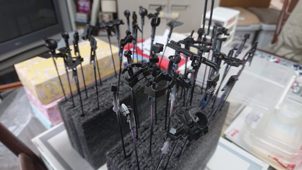 ガイアのグラファイトは黒鉛入りのちょっと特殊な塗料になっているのでその効果を出すかどうかはとりあえず保留にしておきます。