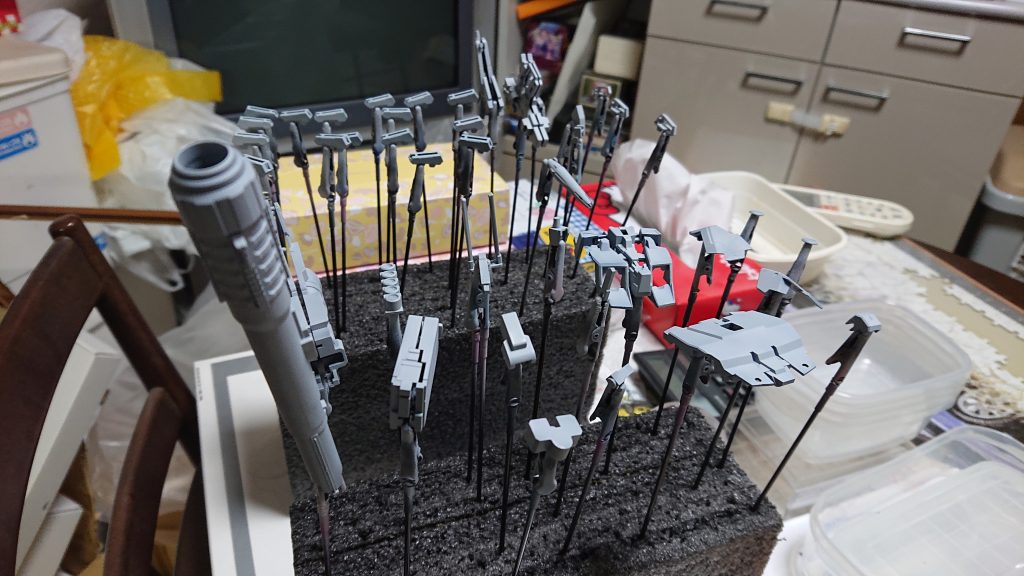 Tarupu 2021.11/19更新 23 ユニコーンガンダム 144 2 いいねしたモデラー(2) 0 作品を共有 白パーツの塗装が終わったのでグレーサフ工程に移ります。 フレームと白を除くとこれだけしかないという極端なキットですね、一応成形色毎に分けておかないと後で間違いそうです。 サフを吹いた後はまずはバーニア塗装、クレオスの焼鉄色とスーパーゴールドを調色してやや明るめにしておきます。 続いてはライフルなどの武装ですが、こちらはフィニッシャーズのライトガンメタルにピュアホワイトとガイアノーツのクリアグリーンで調色してあります。 制作中 コメント コメントをして応援しよう コメントにはログインが必要です Tarupu MG中心に作ってます、SEED系が多めです。キットそのものに手を入れることは稀ですが塗装は常に調色し既製のカラーをそのまま使うことはほぼありません。 できるだけ制作ストーリーも記録残っているものは充実させていければと思っています。 過去に制作したものも順次掲載していきたいと思います。 フォロー頂けると嬉しいです、よろしくお願いします。 5 ガンダムMk-II Ver.2.0 MG ガンダムMk-II Ver.2.0を塗装改修致しました… 6 ユニコーンガンダム MG ユニコーンガンダムの製作をしました。 Ver.Kaでは… 9 ストライクフリーダムガンダム フルバーストモード MGストライクフリーダム フルバーストモード塗装改修完了しま… 9 パーフェクトストライクガンダム Ver.RM パーフェクトストライクガンダムRMの作成記録です。エールスト… Tarupuさんのページ この作品をお薦め作品に設定する Please login to update your profile! Please login to update your profile! Please login to update your profile! Please login to update your profile!