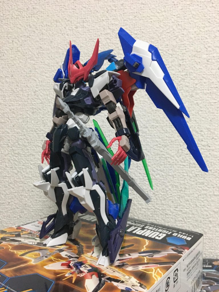あとは脚部に付けたバーニアもといエクシアの肩の中にキマリストルーパーのバーニアを奪って接着したり、頭の装飾もといギラギラーガの尻尾の長さを調整したりそんな感じですん。大体の形が決まってきたのであとは細かいところを弄り終わったらサフっていけたらいいかなぁといったところでございます。もっともその細かい点で時間かかりそうですが私の場合……。今年が終わる前に完成できるかなぁ(遠い目)。何かアドバイスなどありましたらよろしくお願いいたします。
