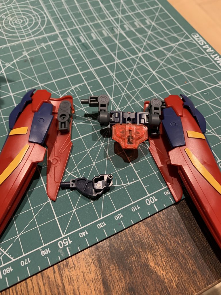 また、ウイングの一部を切り出し、可動するようにしました。あとはウイング内部にスラスターを仕込もうかと思います。マントを広げた形態は取れませんが、元のマスターガンダムより機動性が向上しているという設定に変更。