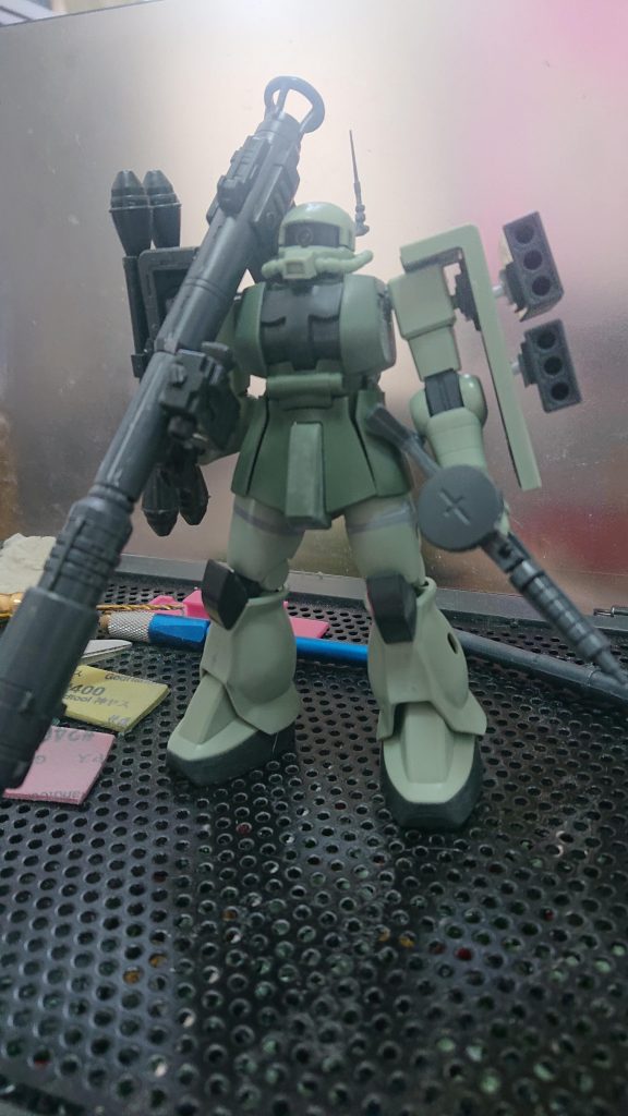 旧hgのザクⅡです。ガンダムベースの武器セット、グフのヒート…