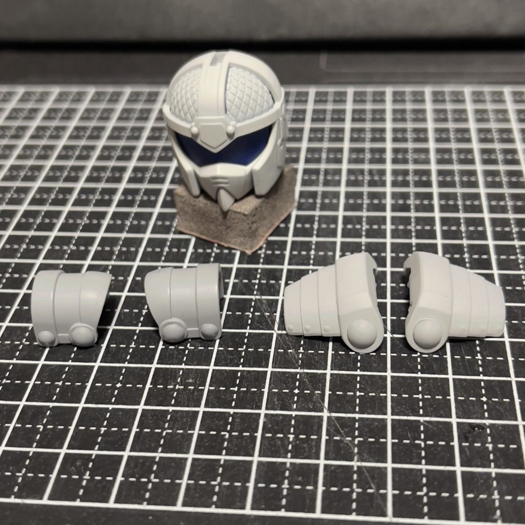 鎧部分のドーム状のビスのようなモールドは少しダルい印象でしたので、まるごと削ぎ落としてWAVEの丸モールドなどで復活させました。シールド裏も寂しい印象でしたので丸モールドを追加しました。