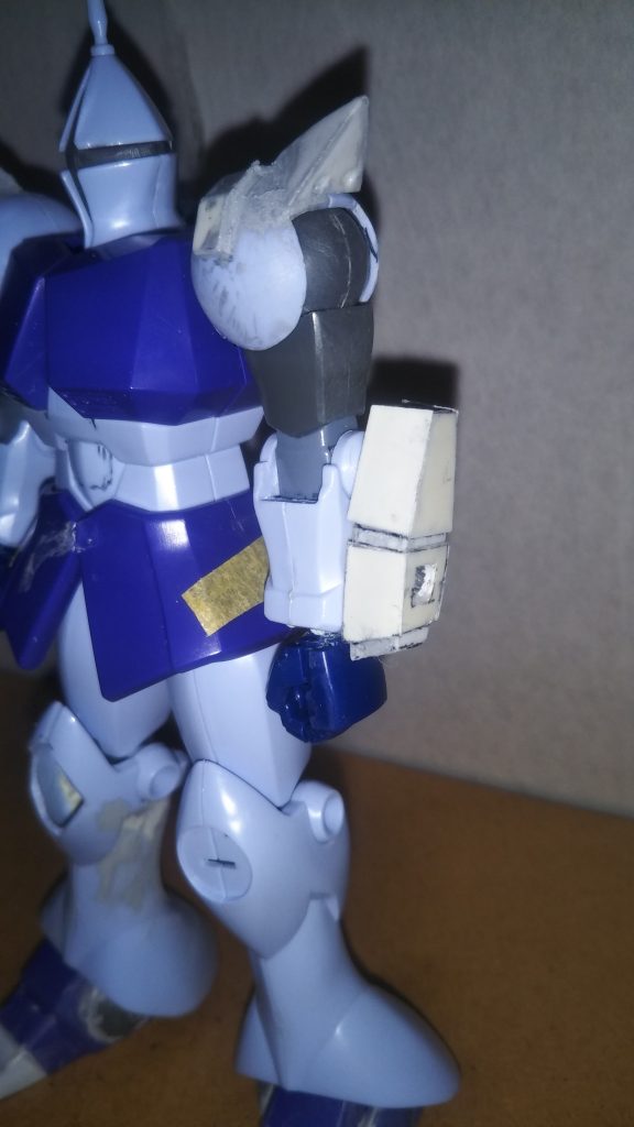 このゲルググ的な補助推進器や特徴的な肩アーマーで、私が何を製作しようとしているのか予想できてしまう方もいらっしゃるかもしれませんが、繰り返しお願いいたします。