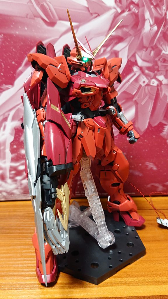 電飾、表面処理、合わせ目処理、部分塗装、スミ入れまで全て終えた2体目の製作になるMGテスタメントガンダムです。
