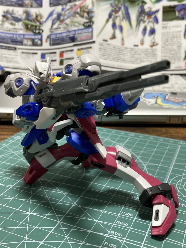 仕様キットは訳あって余っていたGNバスターライフル、昔に買ってこれまた遊び尽くしてくたびれていたGNツインビームライフル、そして同じくくたびれていたHGエクシアの膝です