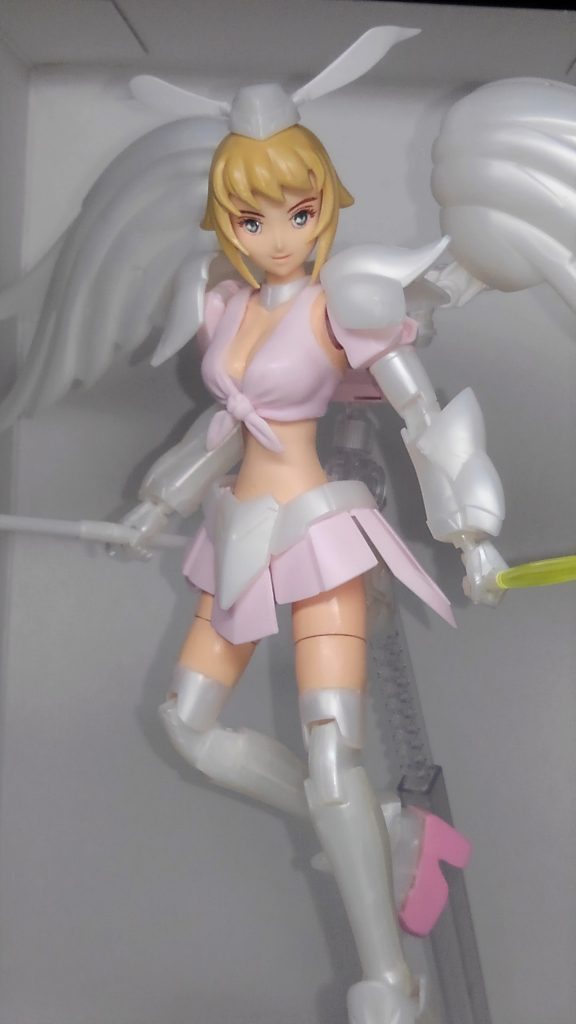 頭の飾りは表情付けられるように回すと角度が変えられるんですが、獣耳っぽく上に立てても良かったかな?と思っていたところです。昔のワルキューレの冒険というゲームキャラのパクリです。