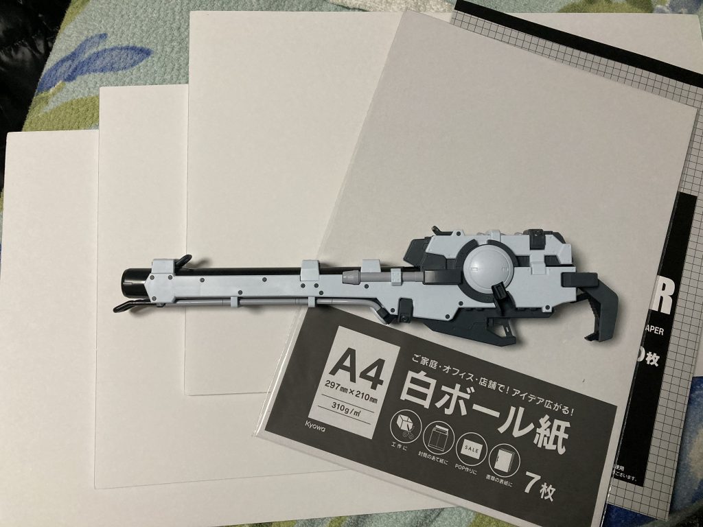 GNファング制作の合間に機体の機首部分の制作にも着手します。もうずっと同じ作業を繰り返してると気がおかしくなりそうなので、違う刺激を自分に与えねば(薬中じゃないよ)。と言うことで、昨年に帰省した時、なぜか売っていたこちらのRGのランチャーを贅沢に用いて大型機体の機首を制作します。イメージ的にはガデラーザのGNブラスターになりますね。ランチャーはコレ一つしかないので、失敗してもいいように一度試作をしてから手を付けます。