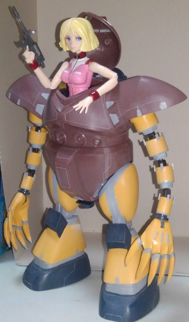 作成中の1/100ゴッグです。セイラを箱乗り乗車させましたw なんというか、未来少年コナンのダイン?船長が乗っていたロボット歩行機みたいな感じをイメージしてたんですが。ちょっと操縦桿的な物は付けるのは厳しいかな。付けられはしますがセイラが操縦してる感は出せないですね。その辺は諦めようと思います。