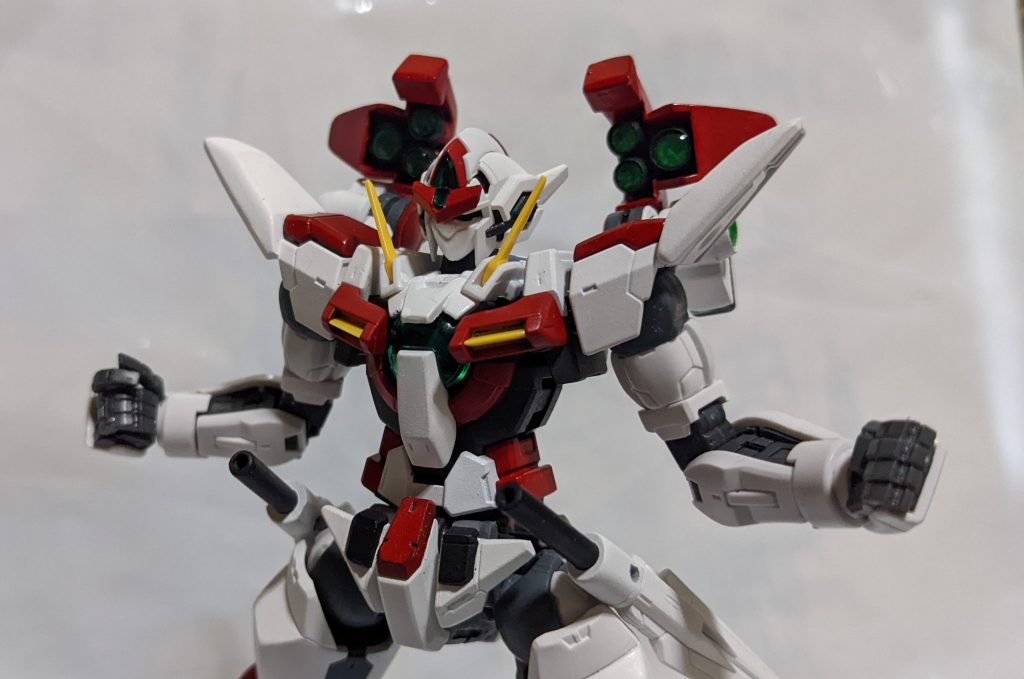 追加塗装と塗装が剥げていた部分のリタッチ完了。オーガンに寄せていたカラーリングでは暗色である赤が肩にしかなかったことがボディが膨張色の白と相まって配色の重心バランスがトップヘビーになってましたが、ブレードの配色に倣ってボディと膝に赤を追加したことでトップヘビーが和らぎ、配色バランスがとれました。