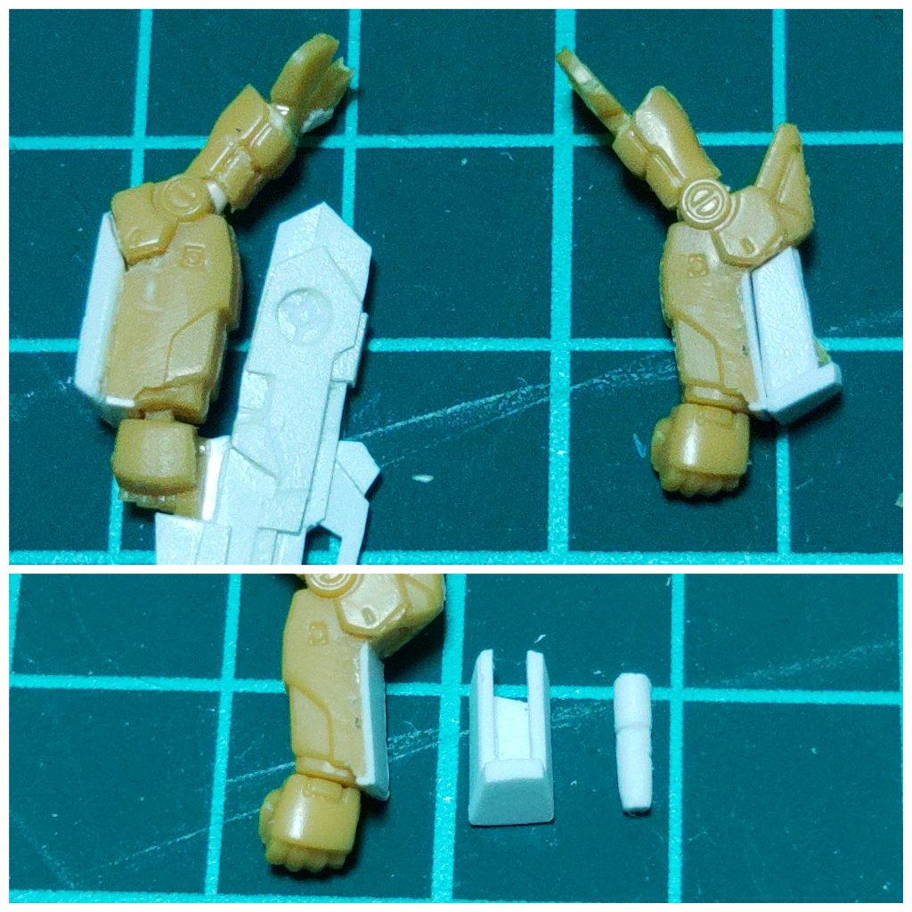 左前腕の予備サーベルは最終的には接着してしまいますが、一応別パーツで作りました。