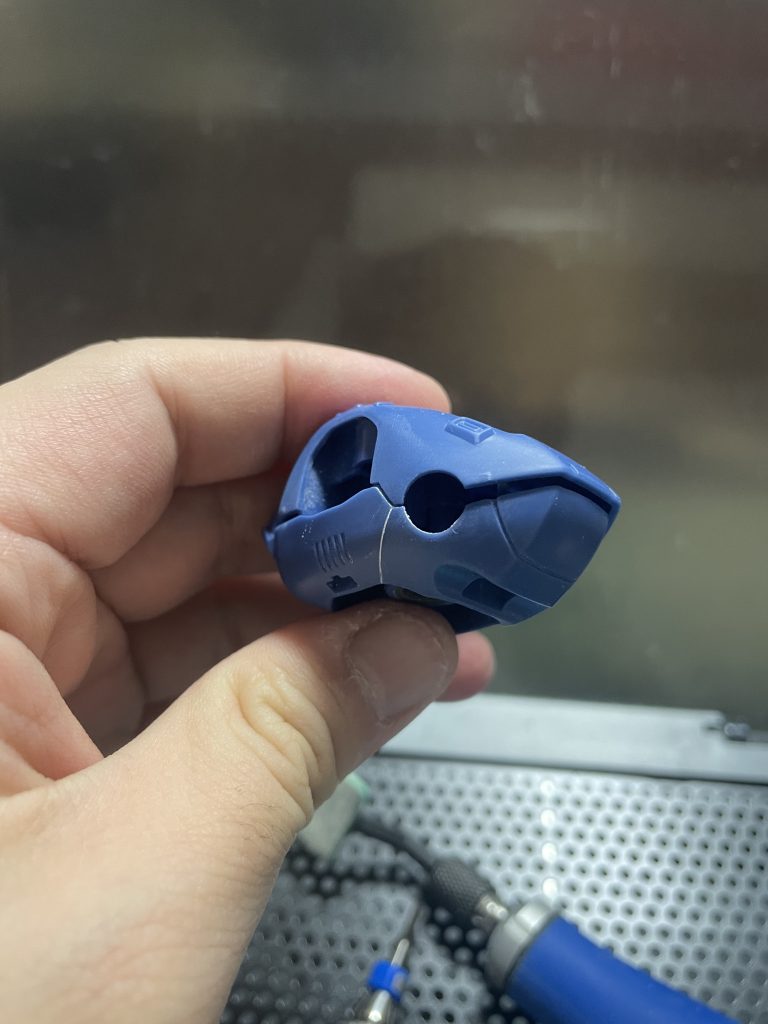 プラ板を床代わりにして安定させる、プラ棒とパテで楽に組み立てられるようにする、はみ出るのを気にする位ならもう最初から大型バーニアを用意する、いっそのこと肩を更に分割できるように大改造してみる(無謀)、…