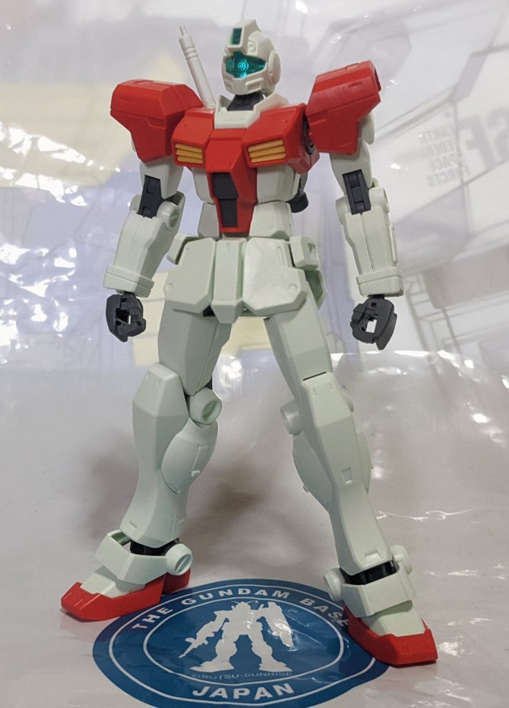 組立済で全身にスミ入れが施され、頭部もジムコマンドタイプしかありませんでしたが状態が良かったため購入。中古組立前だと4000円が組立済の頭部欠品ということもあり、なんと破格の1500円。余ったお金で新品のブルー1号機も買えてしまうお得さ。
