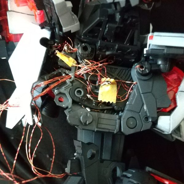 上下のユニット組みしていた配線類をドッキングさせ、配線を股の…