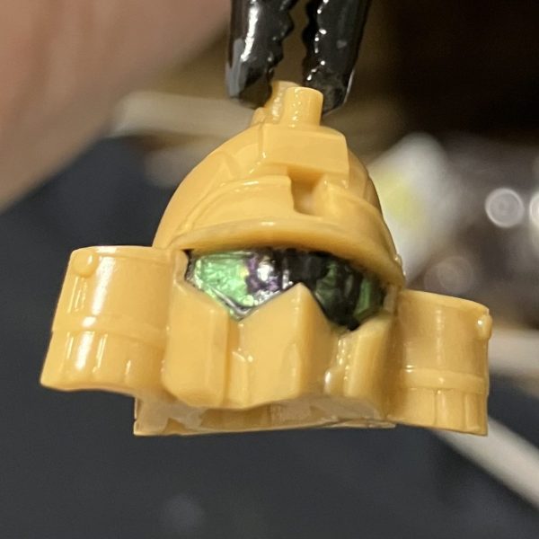 素組み状態だとオモチャぽさ全開だったので、モノアイを自作して…